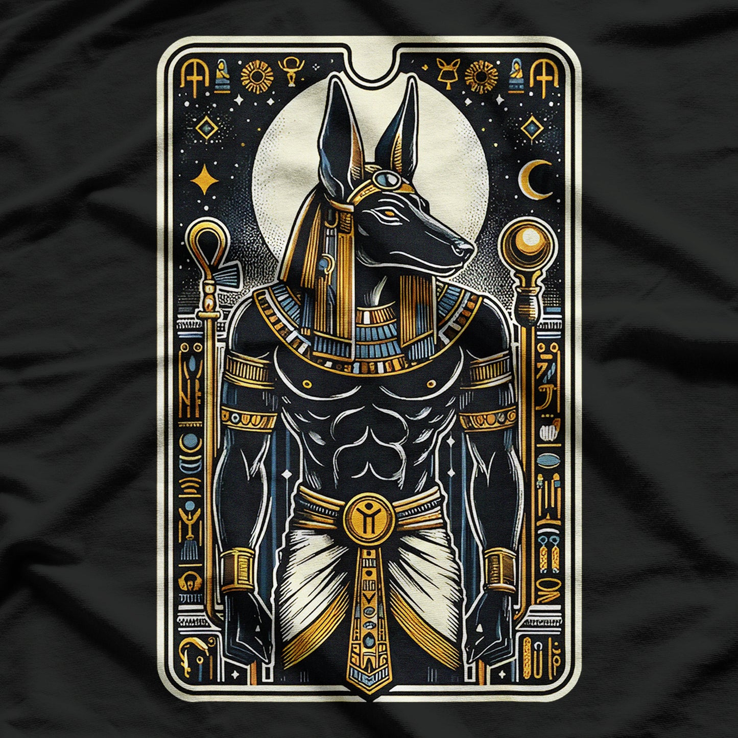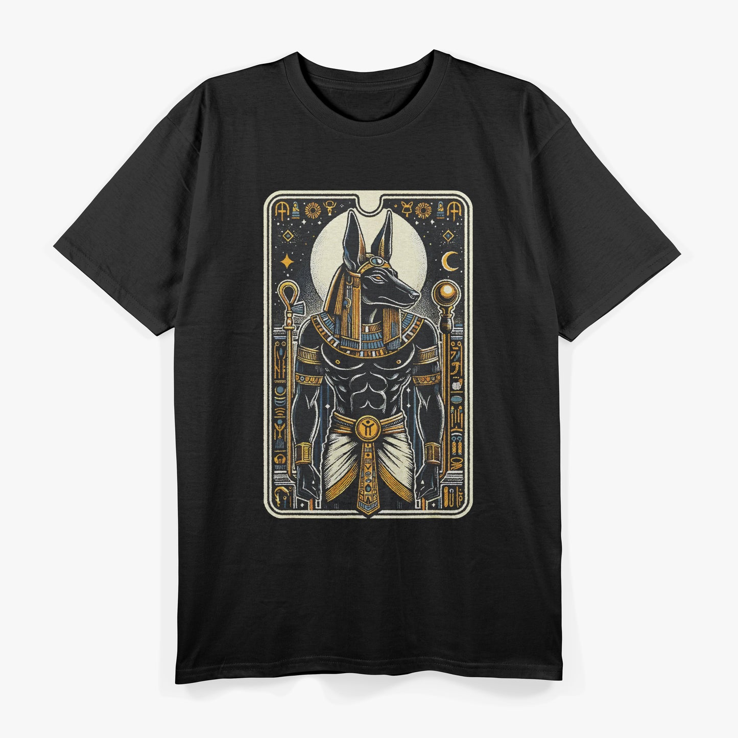 Elevate your style with this mesmerizing t-shirt featuring Anubis, the Egyptian god of the afterlife, in a detailed and regal design. Ideal for fans of mythology, this high-quality tee offers a unique blend of ancient symbolism and modern fashion.