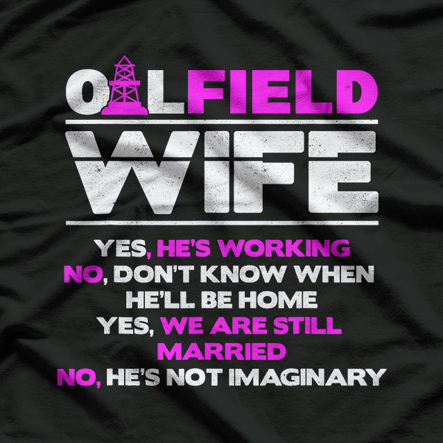 A witty graphic for proud oilfield wives. Great for showing humor and support for the roughneck lifestyle.