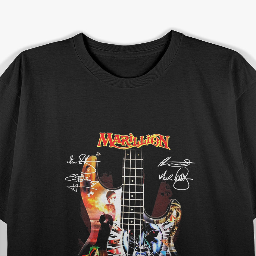 Classic retro design celebrating prog legends Marillion. Features a guitar signature look for fans of timeless progressive rock.