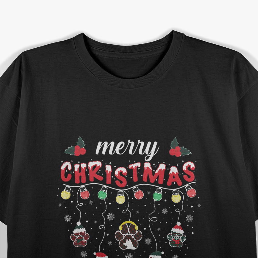 Merry Christmas Lights Dog Paw Festive Pet Lover T-Shirt