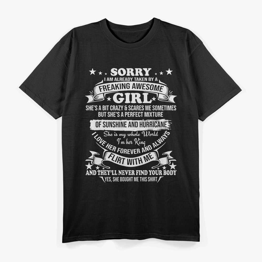 A fun and romantic statement tee for proud partners. Great for Valentine’s Day, anniversaries, or everyday love bragging.